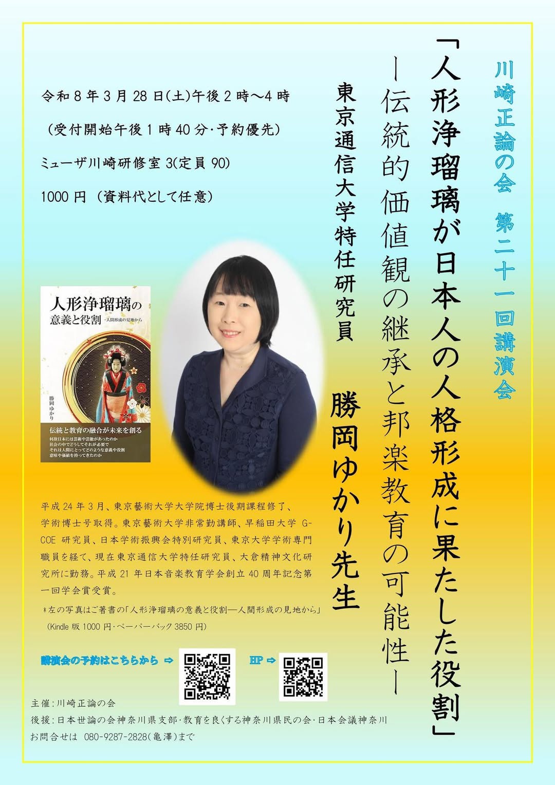 そこでこの度、勝岡ゆかり先生の講演会が下記の要領で開催されますので、興味がある方は、是非、ご聴講ください。