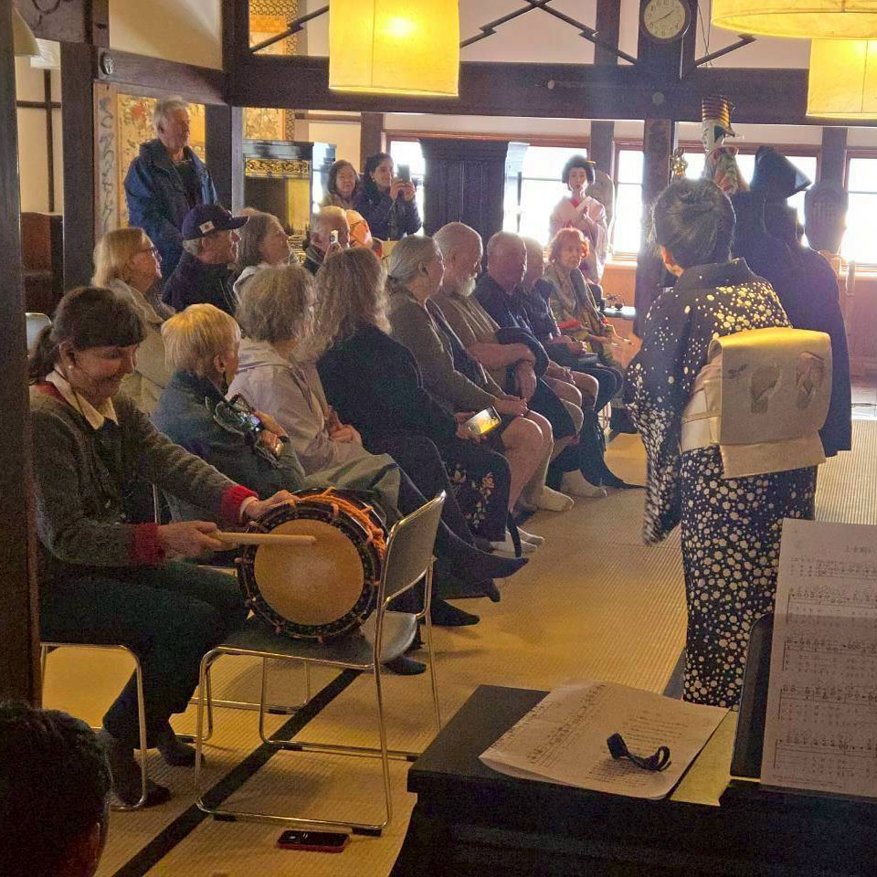 公演では、鳴物(太鼓)を2人のお客さまにお願いすると、喜んでやって下さいました。